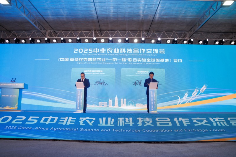 11月7日下午,由金华市人民政府、浙江师范大学主办,金华市农业农村局、浙江省农业对外合作中心、中国-莫桑比克智慧农业“一带一路”联合实验室承办的2025中非农业科技合作交流会在中非(金华)农业科创园举行。会议以“科技赋能农业 中非共创未来”为主题,聚焦智慧农业、农机装备、粮食安全等关键领域,进一步整合政府、高校与国际组织资源,深化中非农业科技协同创新、构建常态化人才合作机制,助力农业现代化、保障区域粮食安全。浙江省农业农村厅总农艺师应金岳,金华市委常委李斌峰,国家统计局浙江调查总队副总队长宋少英,浙江师范大学副校长张建珍出席仪式并致辞。